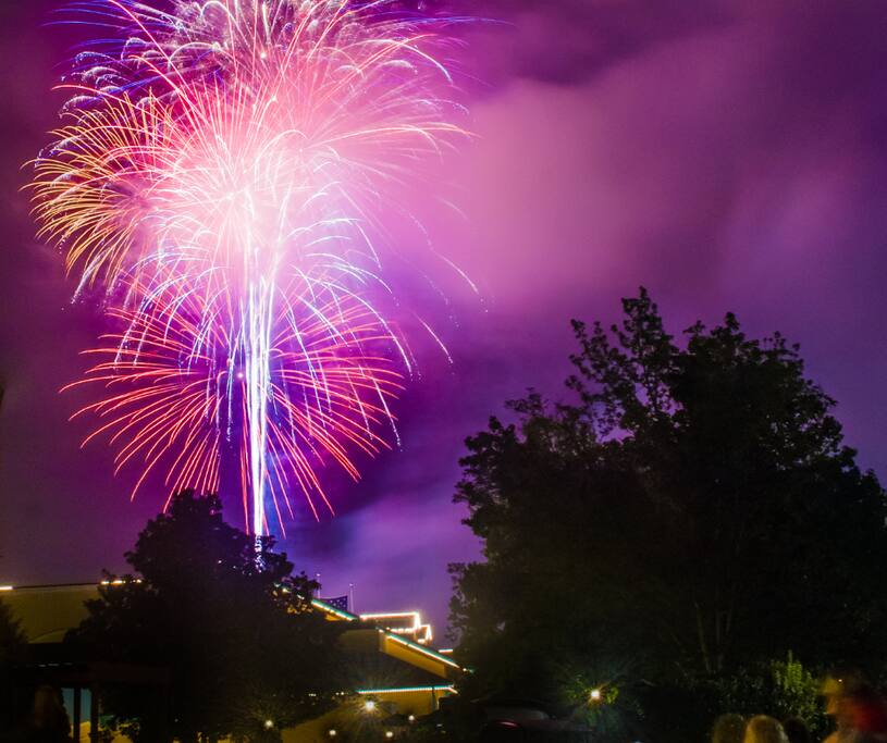 💤 2BR (King/Queen) + 6-bed bunk room | 2 baths — perfect for families & groups 🎢 Steps to Pigeon Forge Racing Coaster & trolley stop 🚶🏻♀️Walk to Parkway & Pigeon River 🔥 Outdoor dining • Shuffleboard • Smart TVs in every bedroom & living area 💻 Office nook + “library” stocked with books, puzzles, games 🐾 Dog-friendly w/ crate & toys | No steep roads & easy parking 🛁 Secluded hot tub under the stars 5 miles to Dollywood 🚦At last stoplight in Pigeon Forge before entering National Park