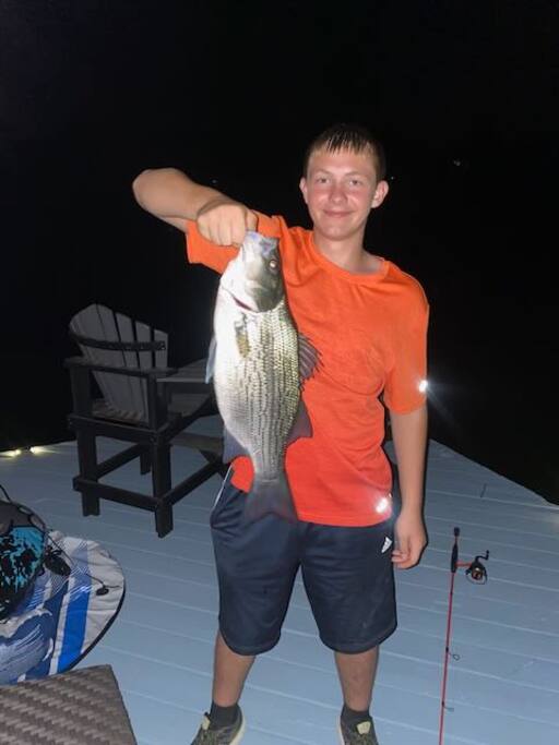 Welcome to our luxurious lakefront villa, boasting breathtaking views and an array of amenities to ensure an unforgettable stay. Spend your days leisurely lounging at the dock, basking in the warm sun and soaking in the picturesque scenery that stretches before you. Relaxation takes on a whole new meaning as you drift lazily in the water, floating effortlessly around the dock. Feel the gentle currents beneath you as you surrender to the calming rhythm of the lake. Let time slip away as you savor the moment, unwinding in blissful solitude or sharing laughter and conversation with loved ones. At our lakefront retreat, the art of doing nothing becomes a cherished pastime. Embrace the opportunity to disconnect from the chaos of daily life and reconnect with the beauty of the natural world. Whether you're lounging on the dock, floating in the water, or simply gazing out at the horizon, every moment is an invitation to savor the simple pleasures of lakeside living. ✔︎ Spectacular lakefront setting with a private covered dock and slip, perfect for boating enthusiasts. Enjoy the convenience of tying off your boat right at the dock, visible from most rooms in the villa. Launch your boat from one of the nine surrounding marinas. ✔︎ Accommodations for up to 12 guests with 3 bedrooms featuring queen beds on the second floor, a sleeper sofa, and a bunk room in the basement, comfortably sleeping 4. --3 bedrooms - each with queen bed --Bunk room in basement - 2 bunk beds - accommodating 4 --Sleeper sofa (queen) --Sleeps 12 total ✔︎ Indulge your culinary desires in our chef's kitchen, fully equipped with a double oven, microwave, air fryer, crockpot, toaster, drip coffee pot, and all the utensils and cookware needed to prepare delicious meals. Additionally, a charcoal grill is provided for outdoor cooking adventures. Kitchen equipped with: --Double oven (wall oven and chef’s oven) --Microwave --Air fryer --Crockpot --Toaster --Drip coffee pot --All the utensils to whip up a hearty meal. --Plates, bowls, salad/pasta bowl --Bakeware --Charcoal grill (bring your own charcoal :) ) ✔︎ Enjoy leisure activities in our game room complete with a pool table and shuffleboard, perfect for entertaining guests of all ages. --Pool table --Shuffleboard --Large screened TN --Giant wall games --Board games ✔︎Outdoor living We provide two levels of spacious decking, providing plenty of seating for your entire party to relax and enjoy the stunning views of the lake. For those who love outdoor cooking, we provide a charcoal grill on-site. While we supply the grill, we kindly ask guests to bring their own charcoal and lighting source for their convenience. As the sun sets, gather around our firepit to enjoy warm nights under the stars. Whether you're sharing stories, roasting marshmallows, or grilling your catch of the day, our fire pit provides a cozy ambiance for memorable evenings with family and friends. --Top deck off kitchen with seating for 4 with bar tops overlooking the lake --Main deck with seating for 6 at our polywood table and 2 bar tops with seating for 4. Total seating on main deck: 10 --Charcoal grill (bring your own charcoal and lighting source) --Fire pit (Must remain on top of fireproof mat) --Seating on dock ✔︎ Explore the serene waters with our kayaks and paddle boards, or cast a line for excellent fishing opportunities. Herrington Lake is renowned for its variety of fish species, ensuring an enjoyable angling experience for enthusiasts. --4 kayaks for your use --1 paddle board --Please use life vests (adult-sized life vests on dock in plastic deck box) Note: we have no child-sized life vests (please bring your own) ✔︎ Pet-friendly accommodation – bring your furry friends along for the adventure! Dogs are welcome but must be crated when unsupervised and leashed when outdoors. A $200 pet fee per dog applies. ✔︎ Experience the enchanting beauty of our underwater fish lights beneath the dock, attracting a variety of fish species for a captivating nightly spectacle. ✔︎ Immerse yourself in Kentucky's rich bourbon heritage, with 10 distilleries conveniently located nearby. Book your bourbon tours and discover the craftsmanship behind this iconic spirit. Conveniently situated near Danville, Lexington, Harrodsburg, Frankfort, and Lawrenceburg, our villa offers easy access to local attractions, restaurants, and amenities. Escape to our lakefront oasis and create lasting memories with family and friends. FISH GALORE Herrington Lake has had a reputation as one of the best fishing locations in Kentucky for many years. You can find bluegill, catfish, crappie, hybrid striped bass, largemouth bass, spotted bass and white bass. The fun doesn't stop when the sun goes down. Come enjoy your very own backyard aquarium starting at dusk. Green underwater fish lights under dock attract the stripper, largemouth, catfish, gar. Light on nightly from dusk till dawn. Come and enjoy the show. See pictures * WINTER POOL: From November to March, Herrington Lake transitions to winter pool levels. Rest assured, our dock is still in deep water as always! However, the gangway will be off the steel steps, and guests will need to climb down a few rocks to reach it. It’s part of the winter lake experience!” BOURBON: 10 bourbon distilleries very close by. Book your bourbon tours!