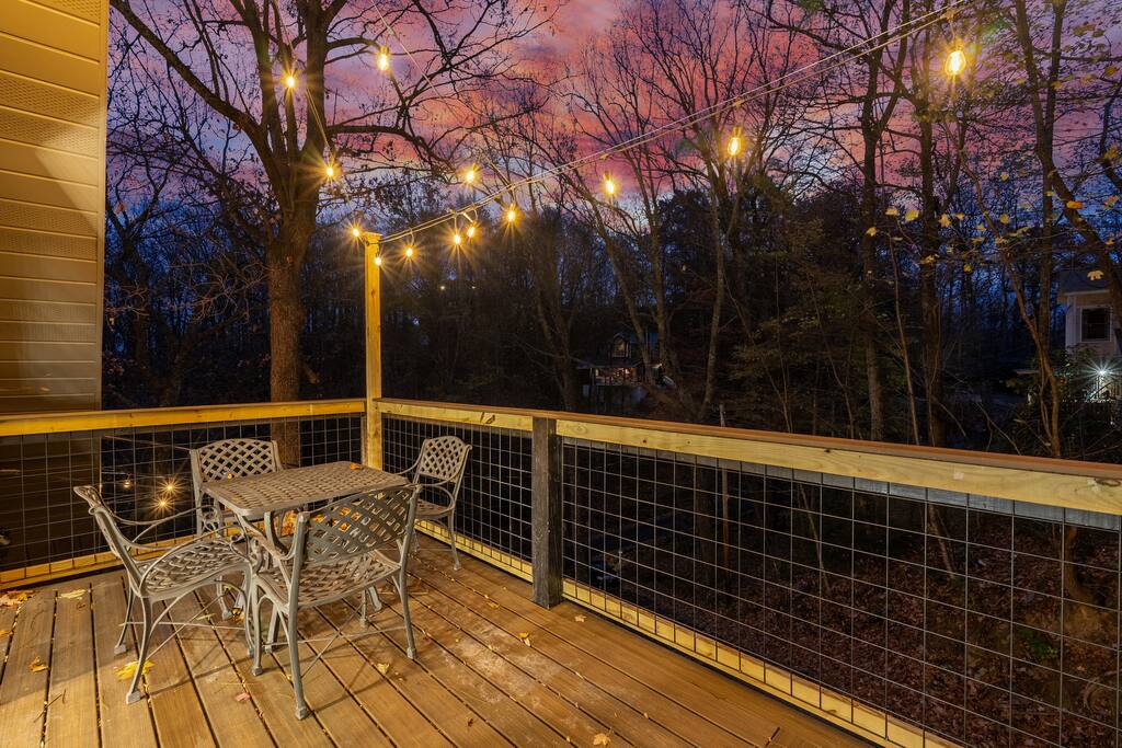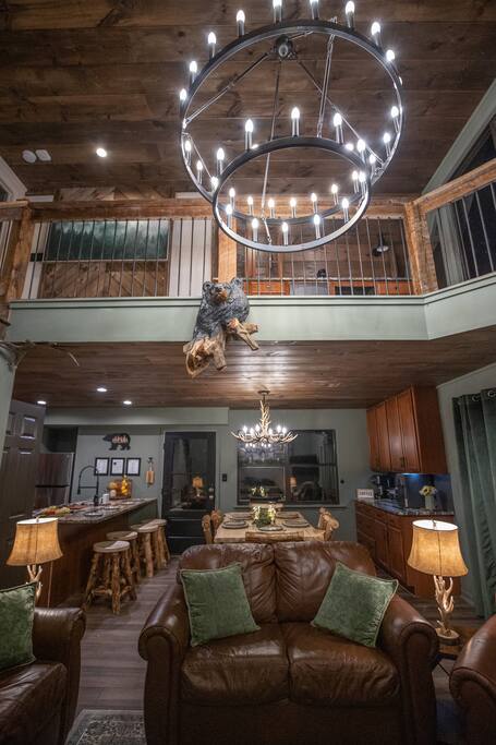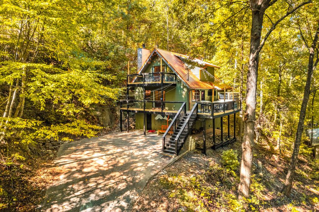 🏞 A Mountain Retreat Where Memories Are Made Welcome to Trailhead Lodge; your front-row seat to peace, presence, and the quiet magic of the Smoky Mountains. Nestled beside the boundary of Great Smoky Mountains National Park, this soulful retreat offers rare access to a hidden trailhead just steps from the driveway: no crowds, no signs, just nature unfolding in every direction. Whether you're chasing waterfalls, sipping coffee on the balcony, or watching your kids laugh in the game room, you’ll feel it here: the exhale, the stillness, the joy of being fully together. 🛌 Sleeps 8 2 King Bedrooms – one on each floor for added privacy Master Suite – with private balcony, ensuite bath, & a coffee + bourbon bar Game Room Bunk Nook – 2 bunkbeds (4 twin beds) perfect for kids or teens TVs in every sleeping area, plus living and game rooms 🍳 Kitchen & Dining Fully stocked kitchen with everything you need Log dining table for 6 + bar seating for 4 Coffee bar and ice machine for ultimate convenience 🎱 Game Room & Family Fun Pool table, arcades, board games, and cozy seating Big screen TV for movie nights and game-day gatherings Designed for joyful connection across generations 🌲 Outdoor Spaces & Wildlife Watching Hot tub under the stars (seats 4) 2 decks with mountain air and outdoor dining Gas grill for easy dinners Frequent bear sightings - safely watch from the deck and don’t forget to lock your car doors! 🐻 Bears can smell food from over a mile away (yep, seriously). Leaving snacks on the back deck is basically ringing a dinner bell. Please bring all food inside when you're not outside enjoying it. 🏞 Unmatched Location Trail steps from the driveway - Cove Mountain Trail connects to Surgarlands Visitor Center and Laurel Falls <1 mile to Ober Mountain with tram, skiing, and alpine adventure 3 miles to downtown Gatlinburg - dining, shopping, distillery tours 🏊♀️ Resort Perks Included Access to 3 mountaintop pools, tennis, and pickleball courts Pools open Memorial Day to Labor Day Courts open year-round 🛻 Important Notes for Your Stay ⛰ Mountain Roads & STEEP Driveway: Like most mountain homes, access includes winding roads and a STEEP driveway. There is flat parking available at the base if preferred—most front-wheel drive vehicles do fine. For winter months, 4WD or chains are recommended. 📶 Cell Service & Wi-Fi: Spotty cell signal (especially AT&T) is common this close to the National Park. Strong Wi-Fi available for streaming and messaging. 🐻 Bear Country Precautions: Lock car doors and never leave food outside Observe bears from a safe distance—yes, they really do visit often! 🌧 Trip Insurance Recommended: Due to our mountain setting, we recommend purchasing trip insurance. We cannot offer weather-related refunds.